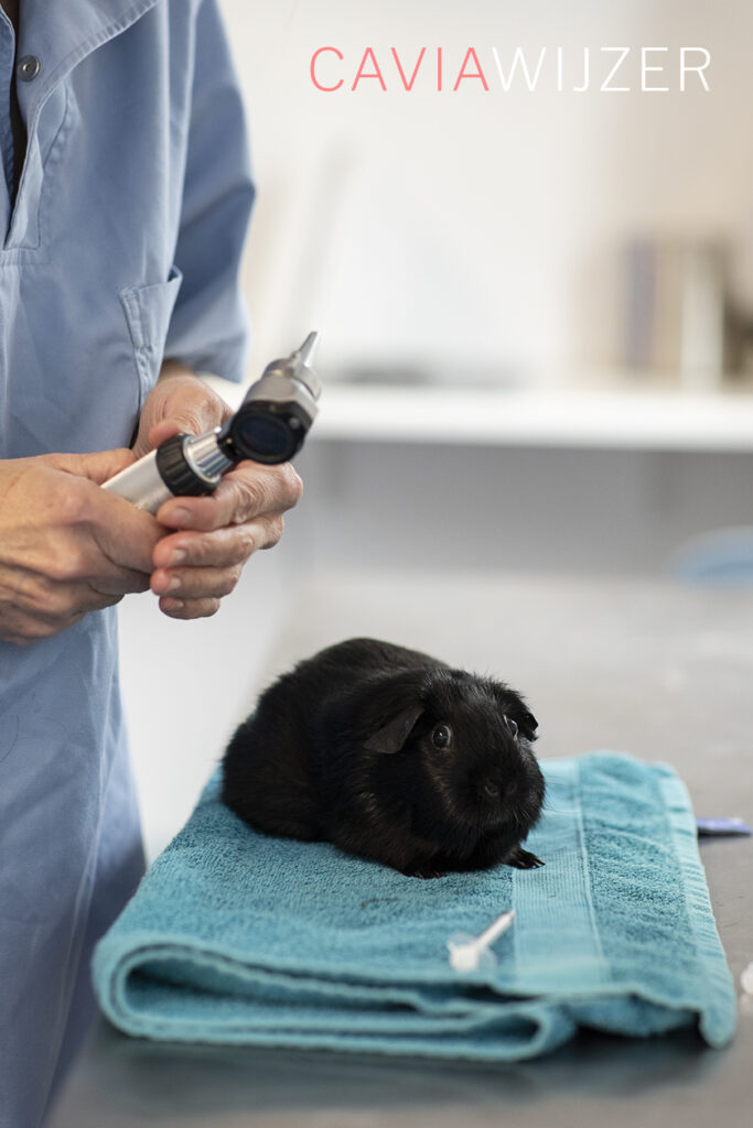Een caviadierenarts doet bij iedere controle een gebitsinfectie met behulp van een otoscoop. Dit is een medisch instrument waarmee artsen normaal gesproken de binnenkant van het oor bekijken. Het is ook geschikt om het caviagebit te inspecteren op afwijkingen. De cavia hoeft hiervoor niet onder narcose. Helaas zijn niet alle gebitsafwijkingen op deze manier te zien. Voor het opsporen van problemen in de kaak of kieswortels is een röntgenfoto noodzakelijk. Ook hiervoor hoeft de cavia niet onder narcose. Het beoordelen van röntgenfoto’s op gebitsafwijkingen vraagt enige oefening. Een dierenarts met minder ervaring kan de röntgenfoto en/of de cavia eventueel doorsturen naar een meer ervaren dierenarts of een gebitsspecialist.